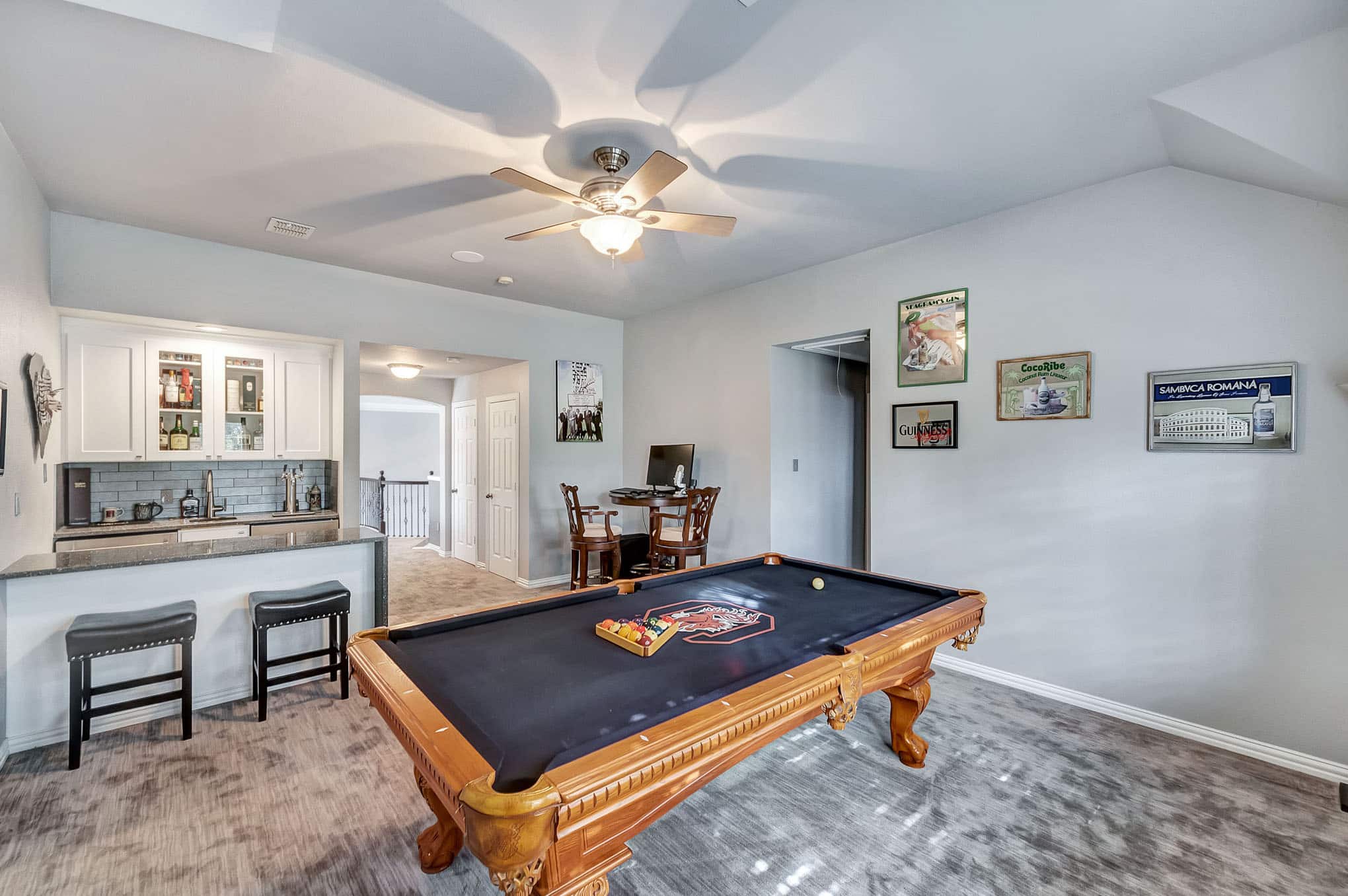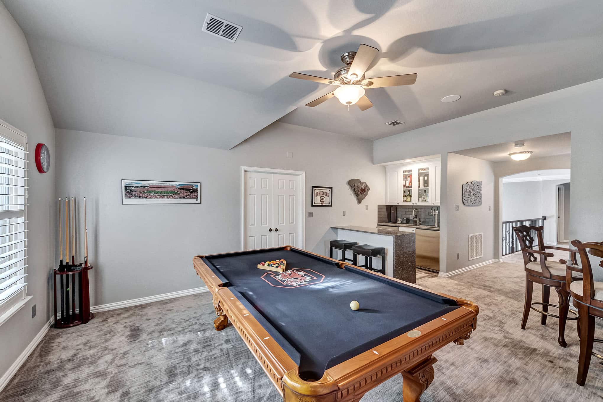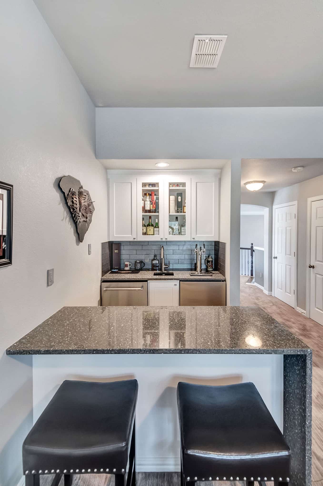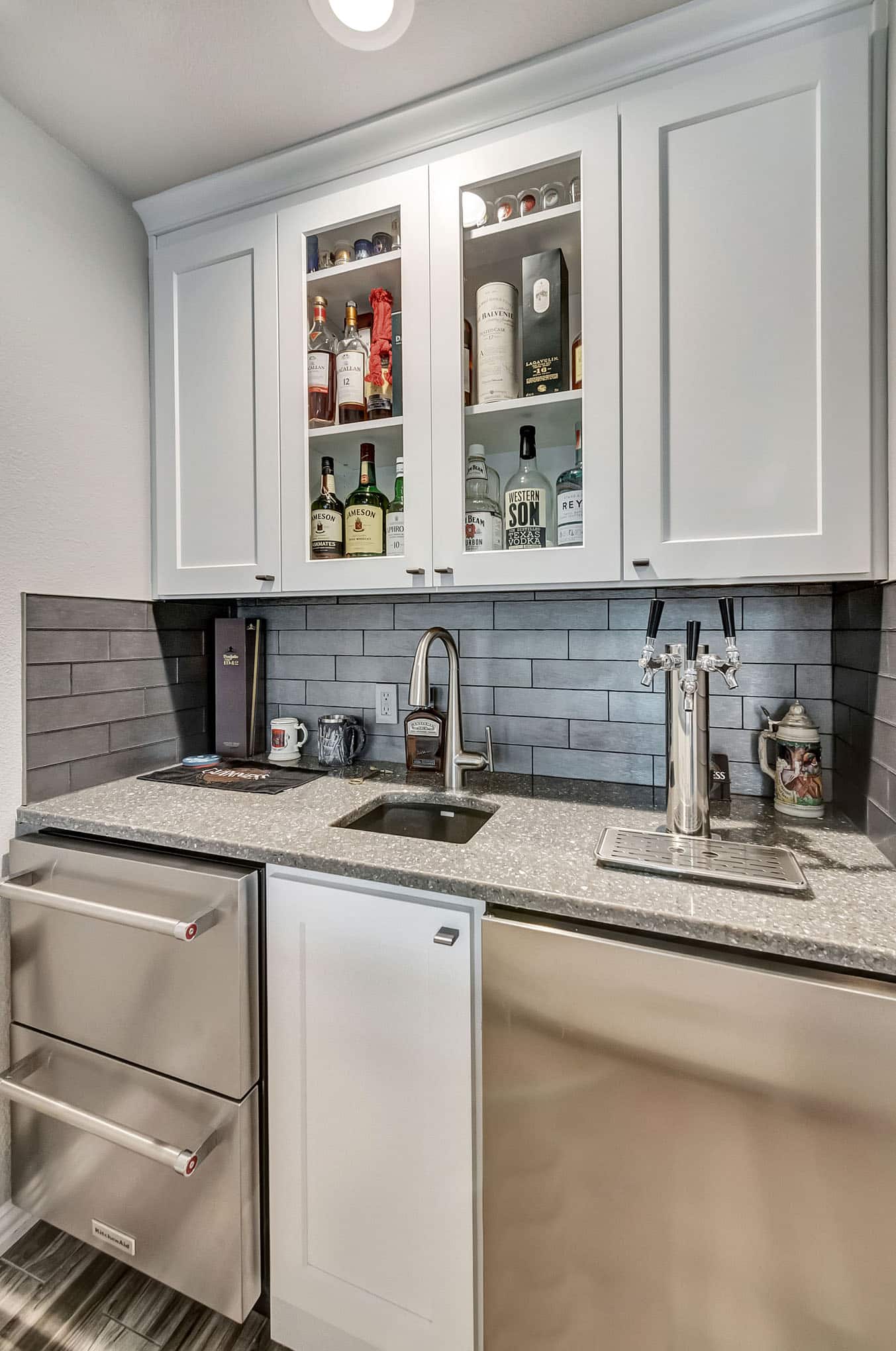 This comprehensive renovation in Allen exemplifies refined elegance and thoughtful design. The kitchen shines with crisp white cabinetry, premium granite countertops with dramatic veining, and professional-grade stainless appliances. Strategic ambient lighting, including sleek glass pendants and hidden LED strips, creates a warm glow throughout. The open-concept layout flows seamlessly into a living area featuring a contemporary linear fireplace and soaring ceilings. The spa-inspired master bathroom offers dual vanities with custom storage, while the expansive walk-in shower with dual rain showerheads and marble-look porcelain tile creates a resort-like retreat. The masterfully organized closet system demonstrates our commitment to both beauty and functionality, with dedicated shoe storage and a central island providing additional organization. Consistent design elements including warm wood flooring, a sophisticated neutral color palette, and high-end fixtures create a cohesive aesthetic throughout this 2018 transformation.
