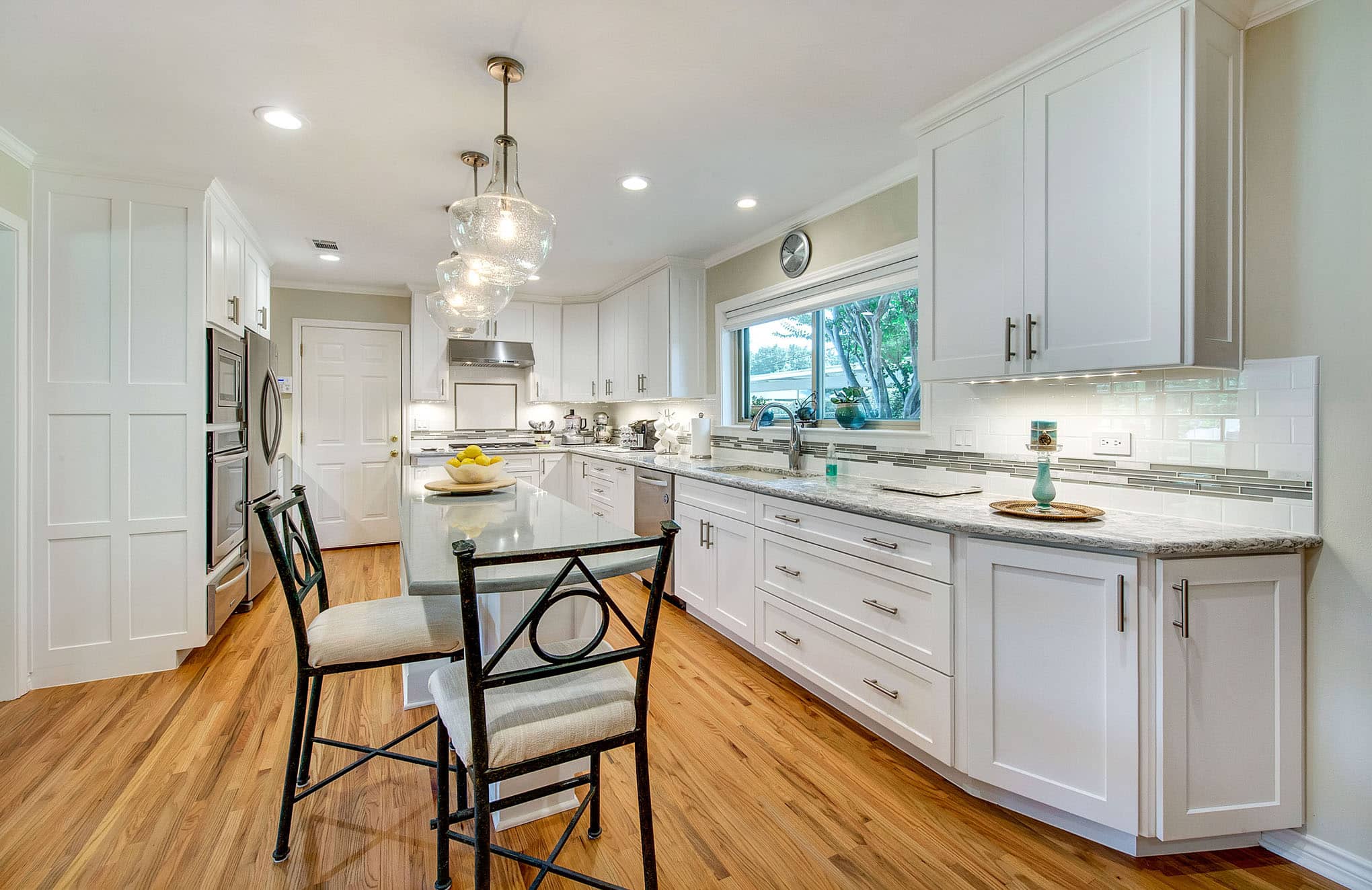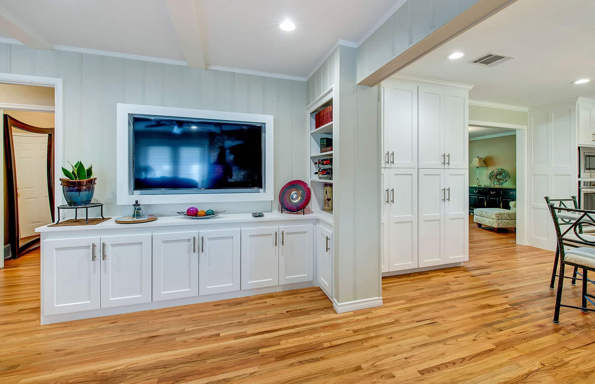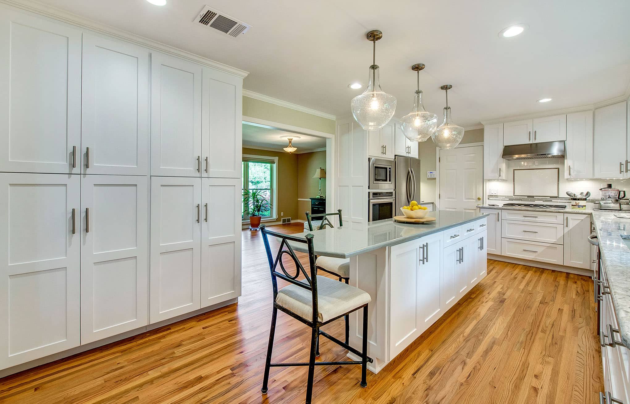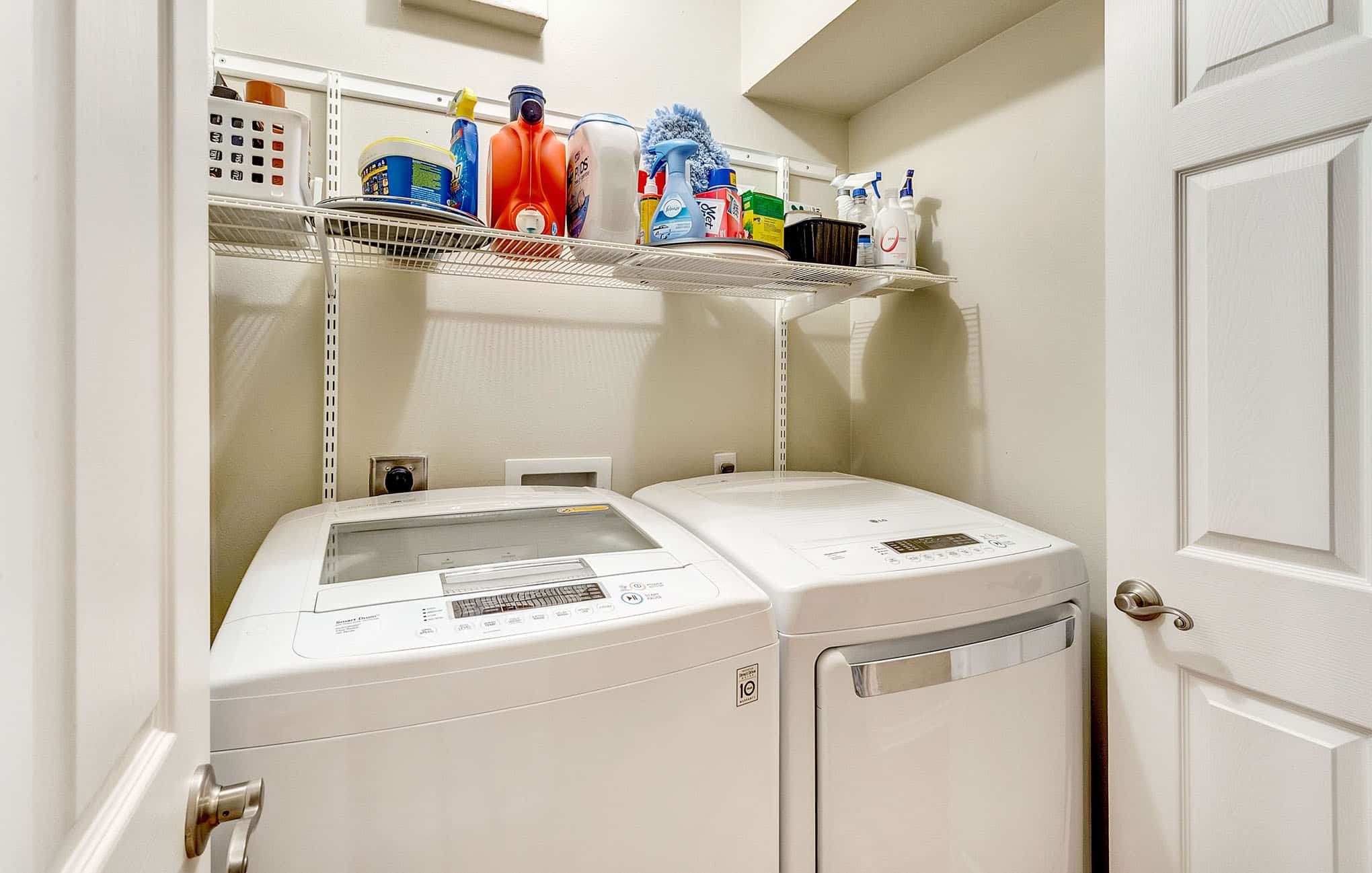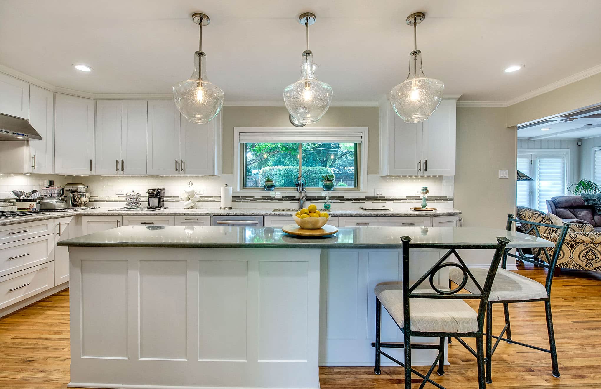 Kitchen, Living Room, Fireplace, and Laundry Room