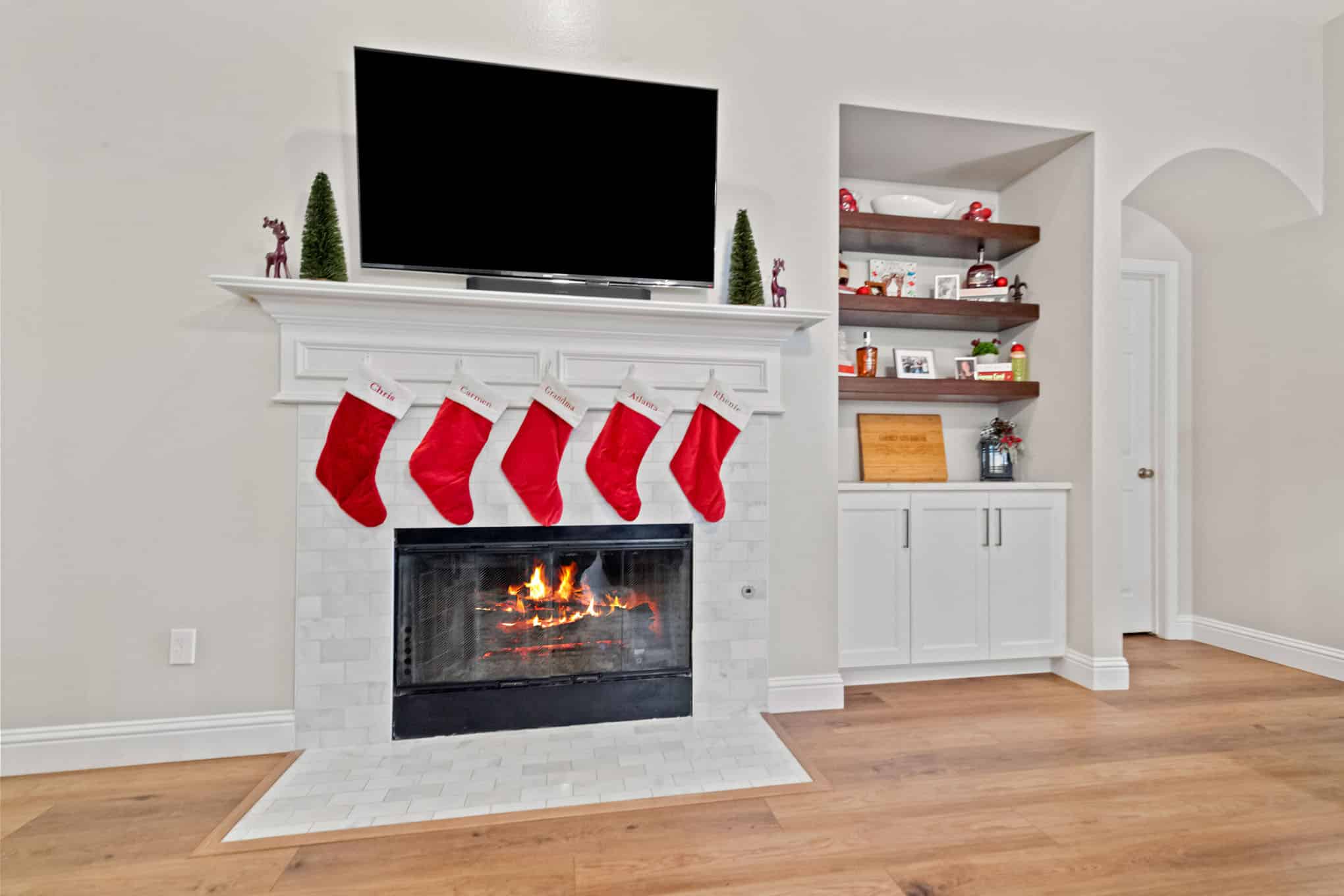 The redesigned fireplace, now a sophisticated focal point with its crisp white mantle and marble surround, perfectly balances the traditional and contemporary elements that define this elegant Frisco residence. This thoughtful renovation exemplifies how Elite Remodeling transforms living spaces into personalized sanctuaries that reflect both sophisticated design principles and the distinctive lifestyle of North Texas homeowners.