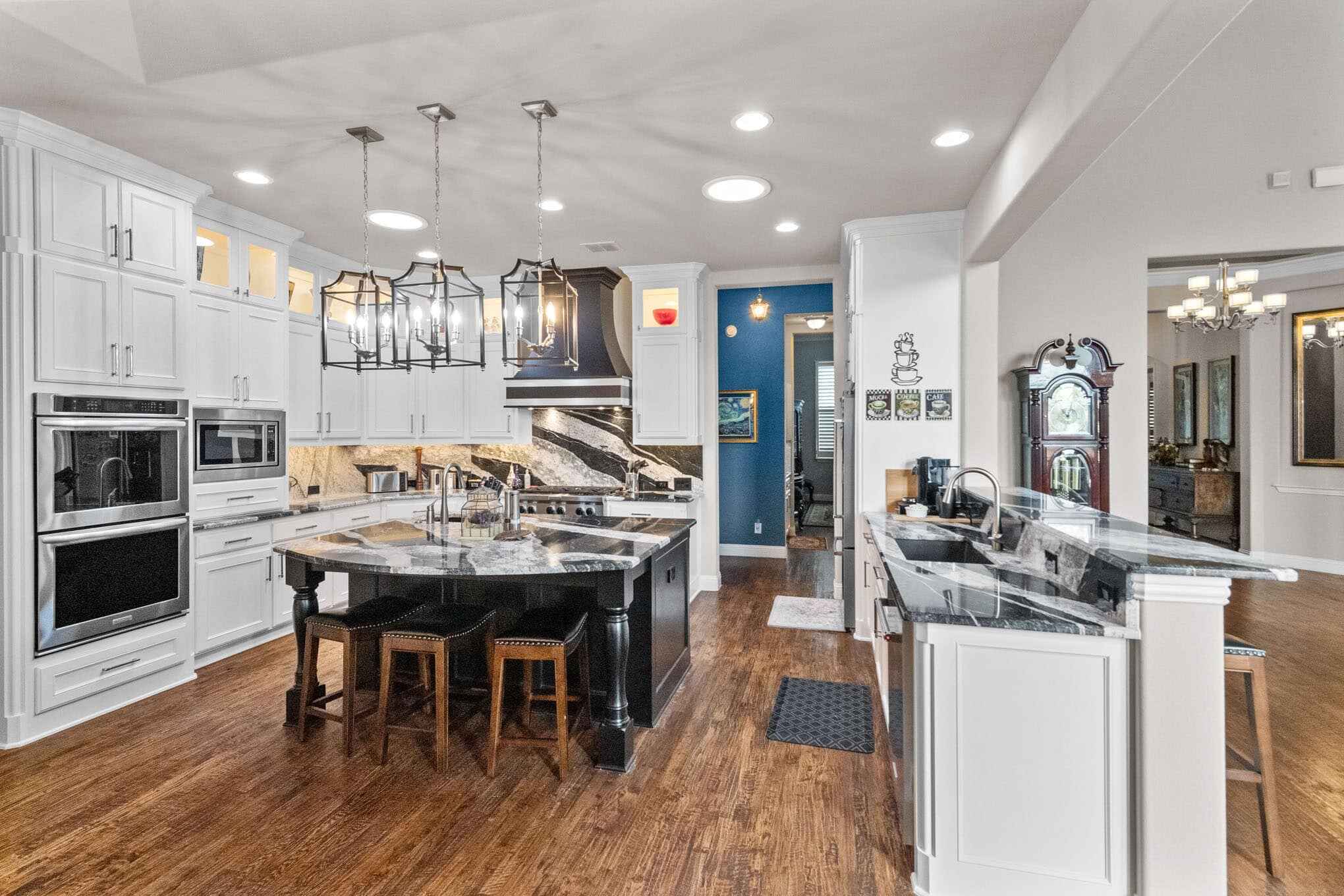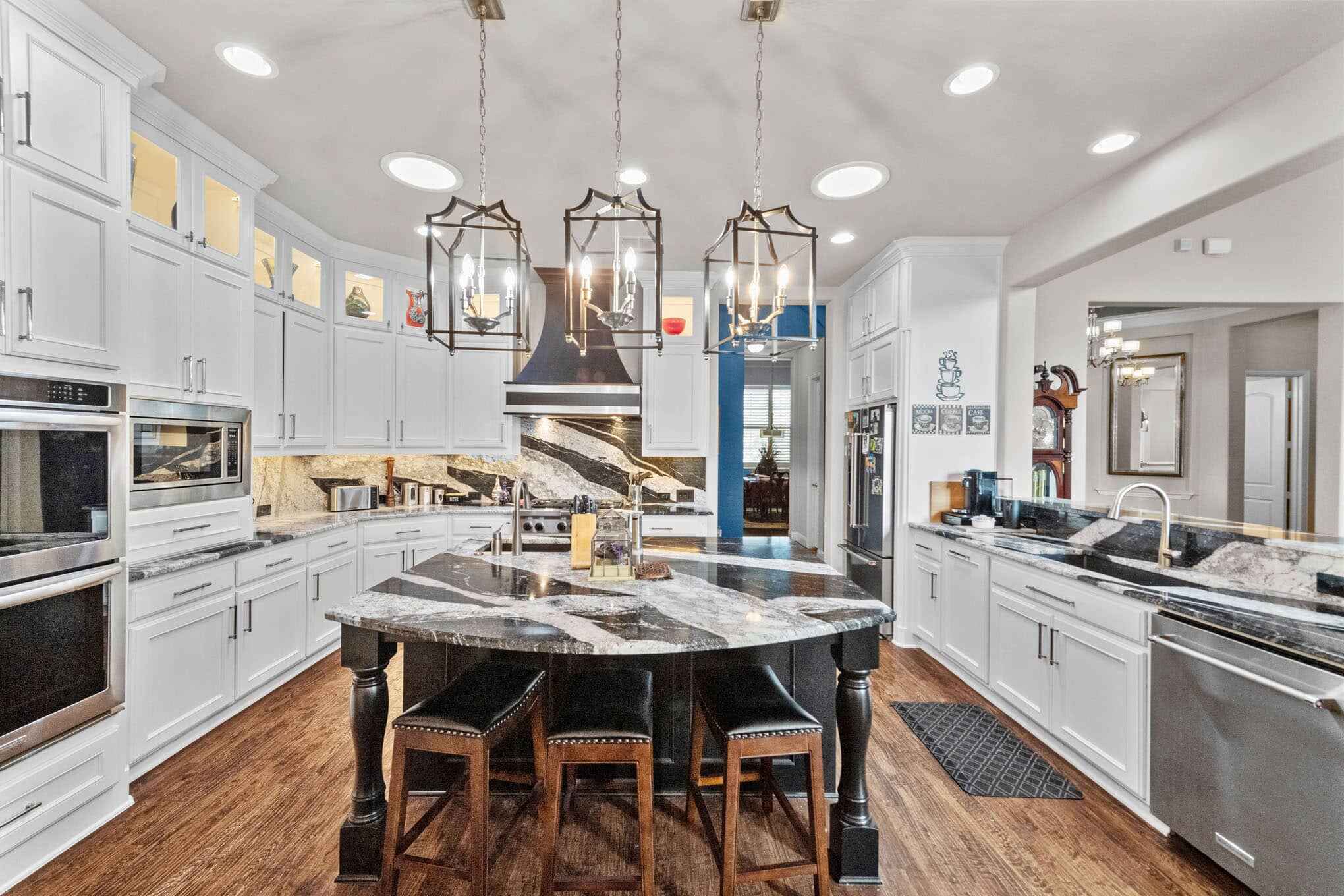 Thoughtful details like illuminated display cabinets, high-end stainless appliances, and decorator touches throughout create a space that balances luxury with everyday livability.